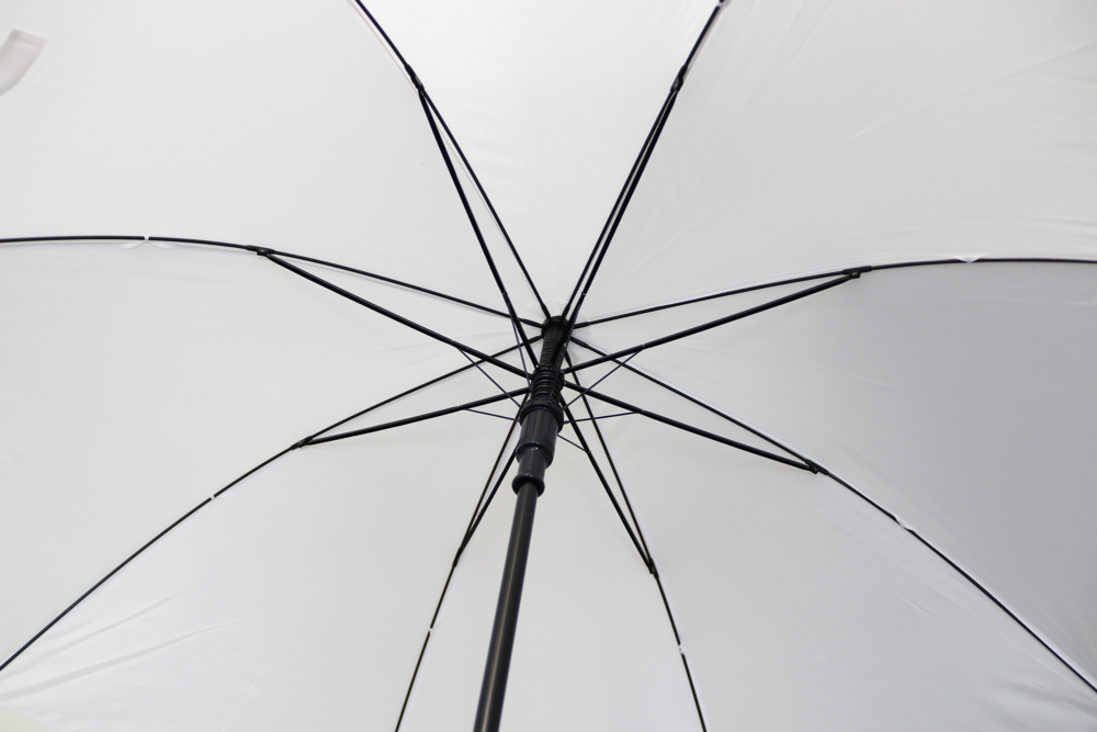 Guarda-chuva branco com cabo de madeira